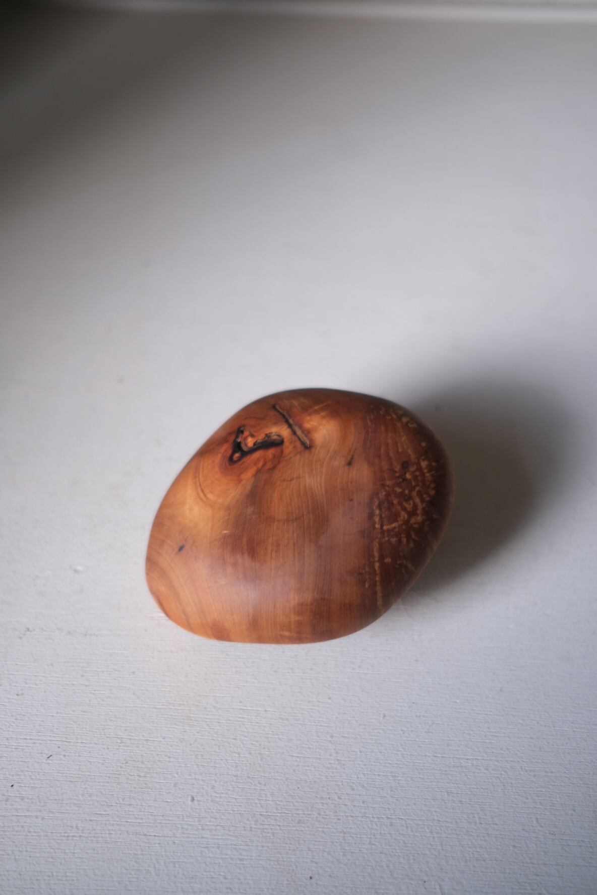 藤本かおり氏が製作。あく抜き、研磨の細かい工程を繰り返し木地師ならではの木取り、柄の出し方は、本物の石を見ているような錯覚にもなります。