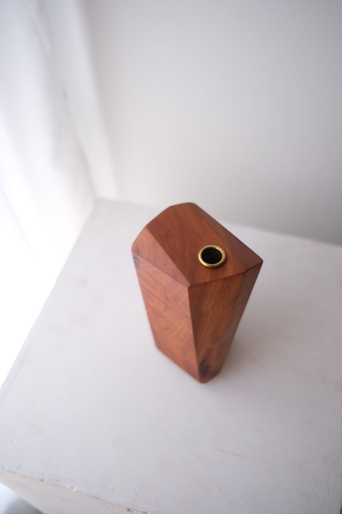 家具製作の過程で生まれた木片を、彫刻のように磨き上げ、一輪挿しに仕立てました。