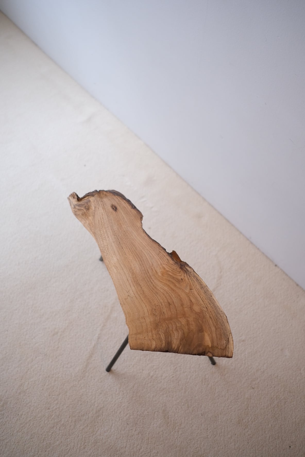 三本の脚で立つ、一枚板のサイドテーブル。