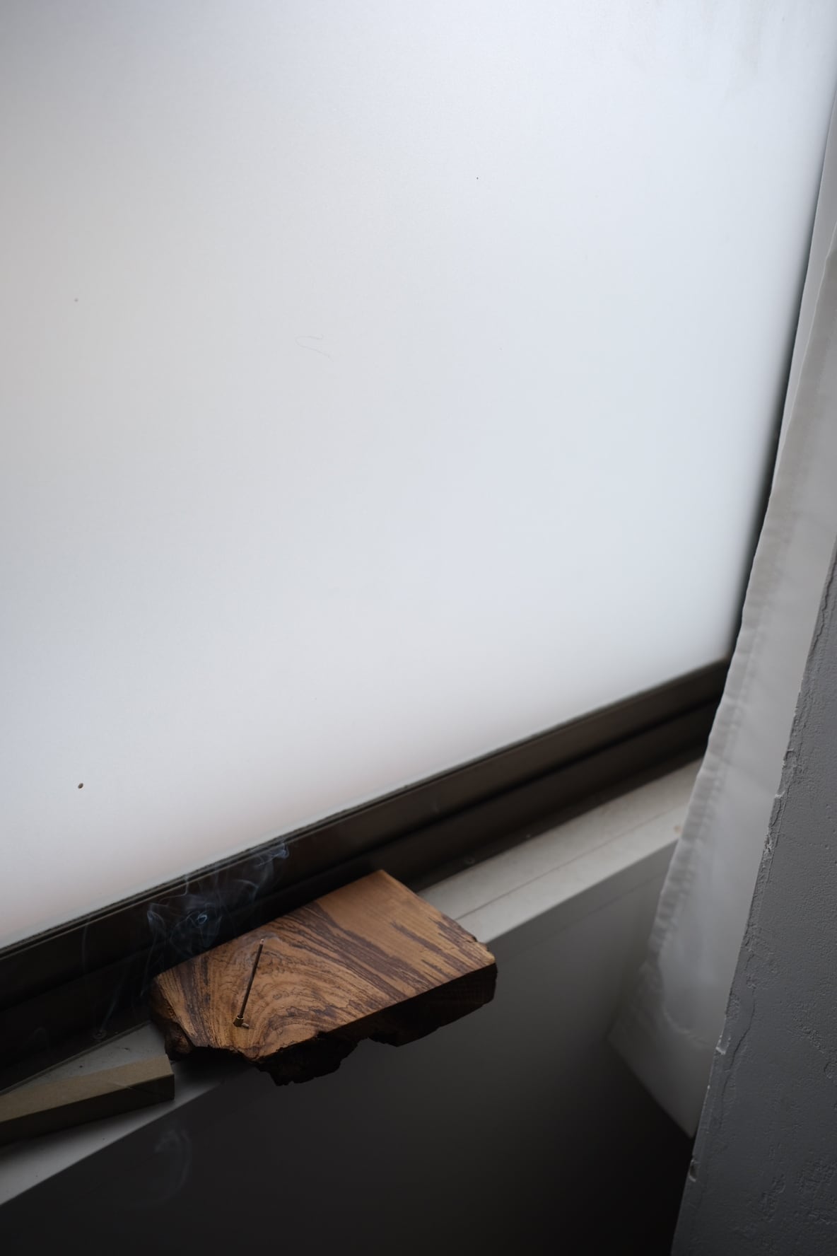 煙と木目が重なり、