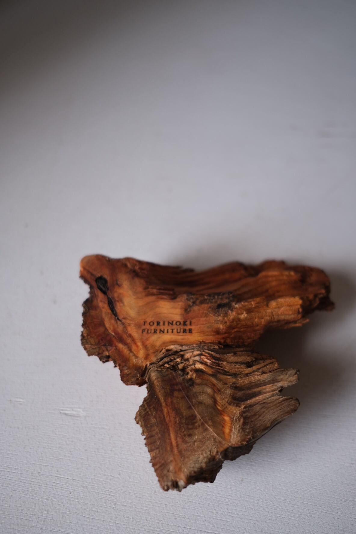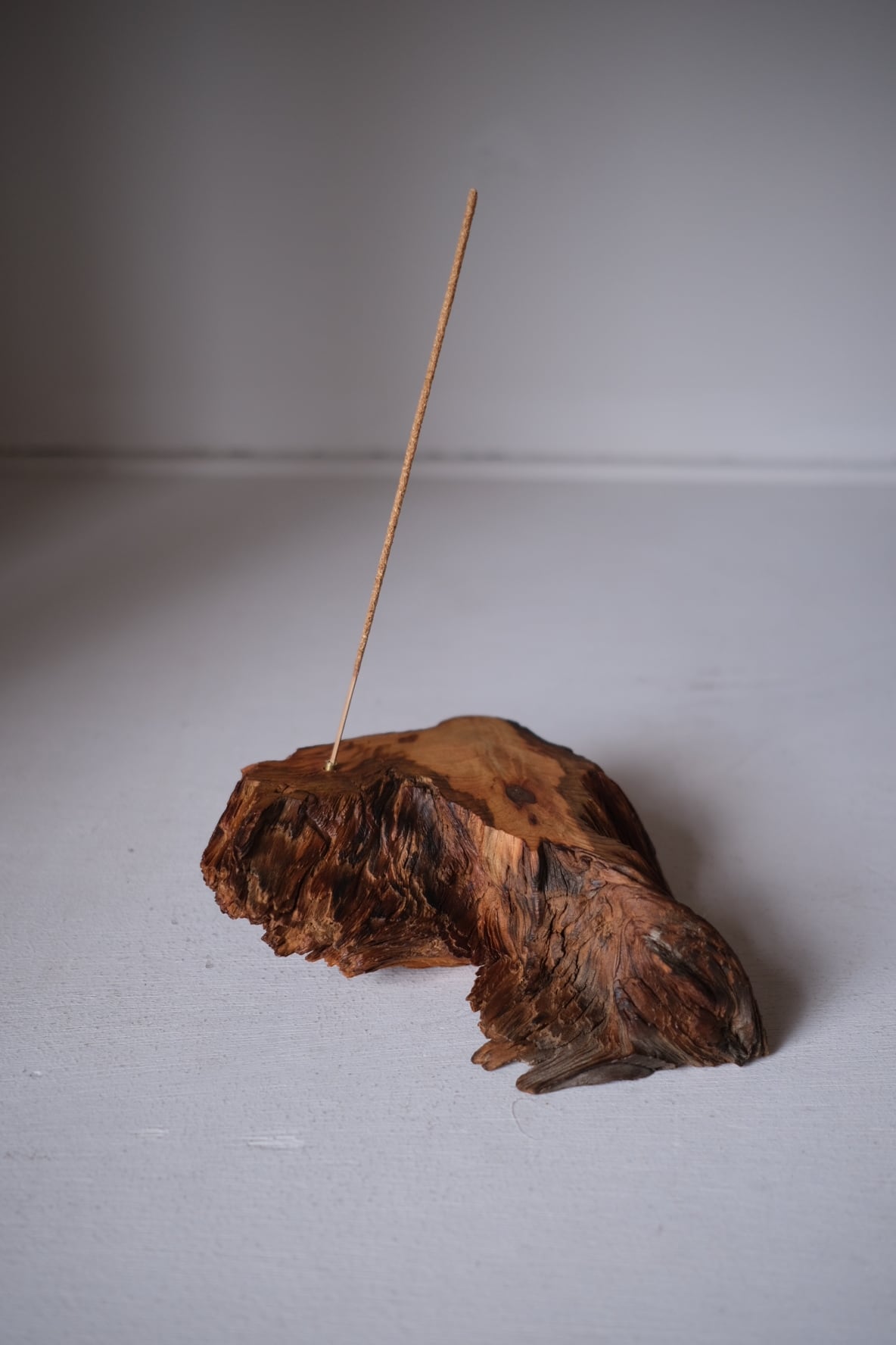 お香立ては、樹齢数百年の天然木を使用し、一枚板テーブルを製作する工程と同様に製作しています。差し込み部分には銅製のパイプを使用し、木と同様に使用していく過程での変色、風合いなどの経年変化を楽しんでいただけるよう製作しています。